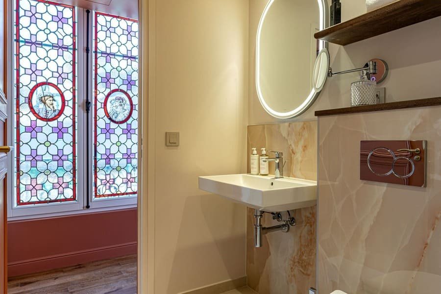 14 appartements, contemporains et élégants, du studio aux trois pièces, se lovent dans un immeuble haussmannien. Pour les découvrir, il faut franchir la grille d’une discrète allée pavée… On apprécie l’esprit parisien qui donne tout son atmosphère et son charme : moulures; cheminée; parquet en chêne blond; vitraux 1900 restaurés; boiseries d’origine; quelques beaux livres et objets chinés; des touches d’art contemporain…