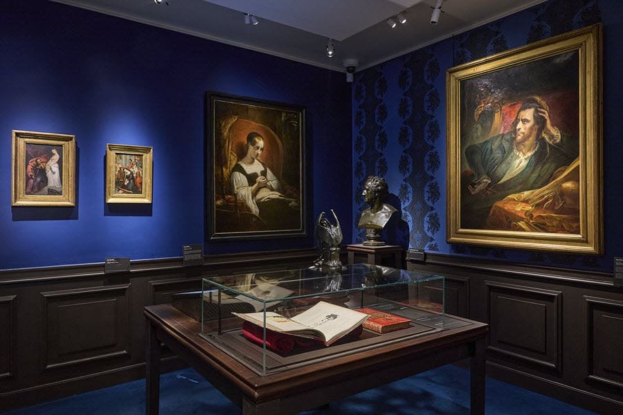 À l’étage, quatre grandes thématiques structurent la découverte : la nature et le paysage, l’expression du sentiment, l’inspiration littéraire et le goût du fantastique. Le parcours s’achève dans l’ancien atelier-salon, point d’orgue de la visite.