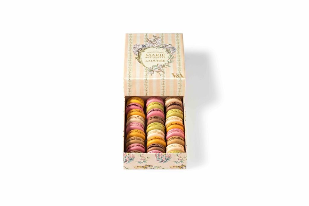 La Maison Ladurée livre un hommage gourmand à la reine de France Marie-Antoinette (Vienne 1755-Paris 1793) avec la création d’un coffret de macarons en édition limitée.
