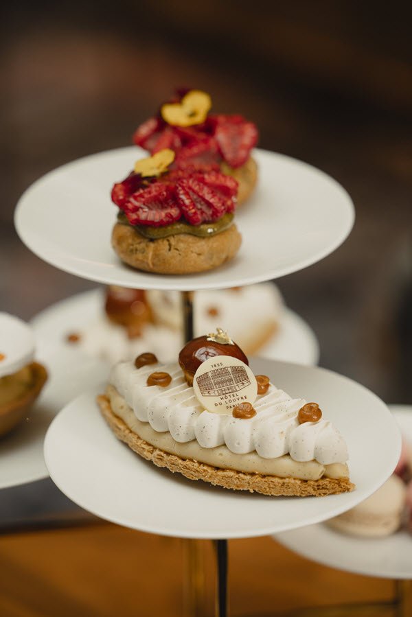 L’Officine du Louvre se prête aussi à un Tea Time délicieusement régressif, imaginé comme une promenade sucrée dans l’univers d’Emily. À la carte : une farandole de gâteaux de voyage et de douceurs haute couture — macarons, cookies aux fruits rouges, mini-tartes, choux créatifs, Saint-Honoré et créations saisonnières signées du Chef pâtissier Julien Delhome.
